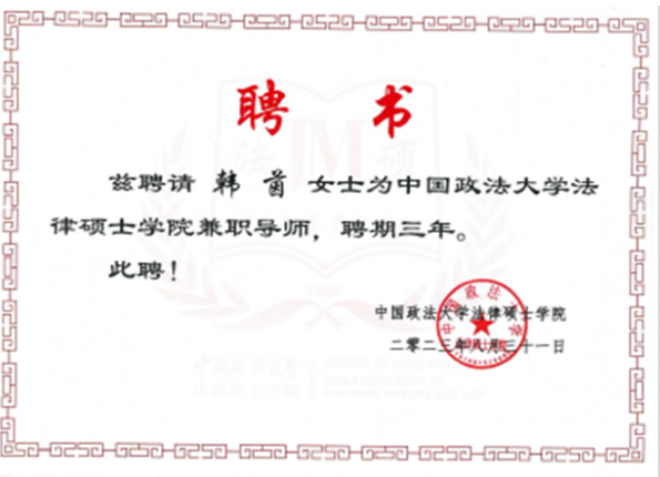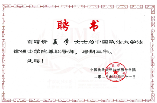 从2009年开始,郑雪倩主任便作为中国政法大学法学院的兼职教授履职任职十余年,北京市华卫律师事务所也先后被中国政法大学、首都医科大学、大连医科大学等高等学校认定为教学基地,华卫所的导师们每年为国家培养数名优秀的法律专业研究生。日前,中国政法大学法律硕士学院再次聘任郑雪倩主任为中国政法大学法律硕士学院兼职教授,邓利强副主任及童云洪、纪磊、刘凯、聂学、赵波、韩茵等六名律师为中国政法大学法律硕士学院兼职导师,这既是荣誉也是责任!律师们将竭尽努力,为我国的医学法律教育工作贡献自己的专业实力和职业精神。