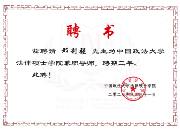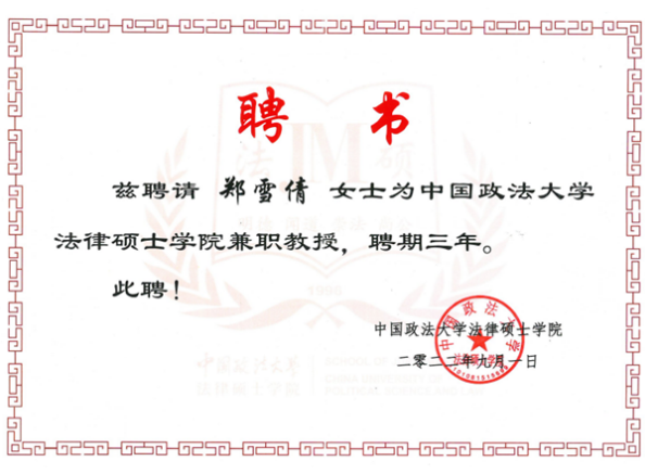 喜报 | 华卫所郑雪倩主任被中国政法大学法律硕士学院聘为兼职教授,邓利强副主任及童云洪等六名律师被聘为兼职导师